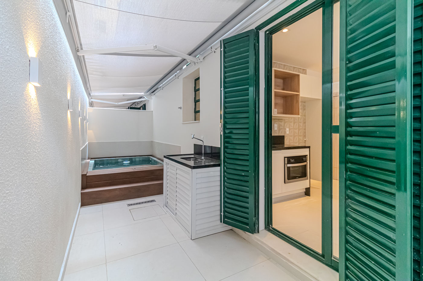 Espaço Gourmet com churrasqueira e bancada de apoio;